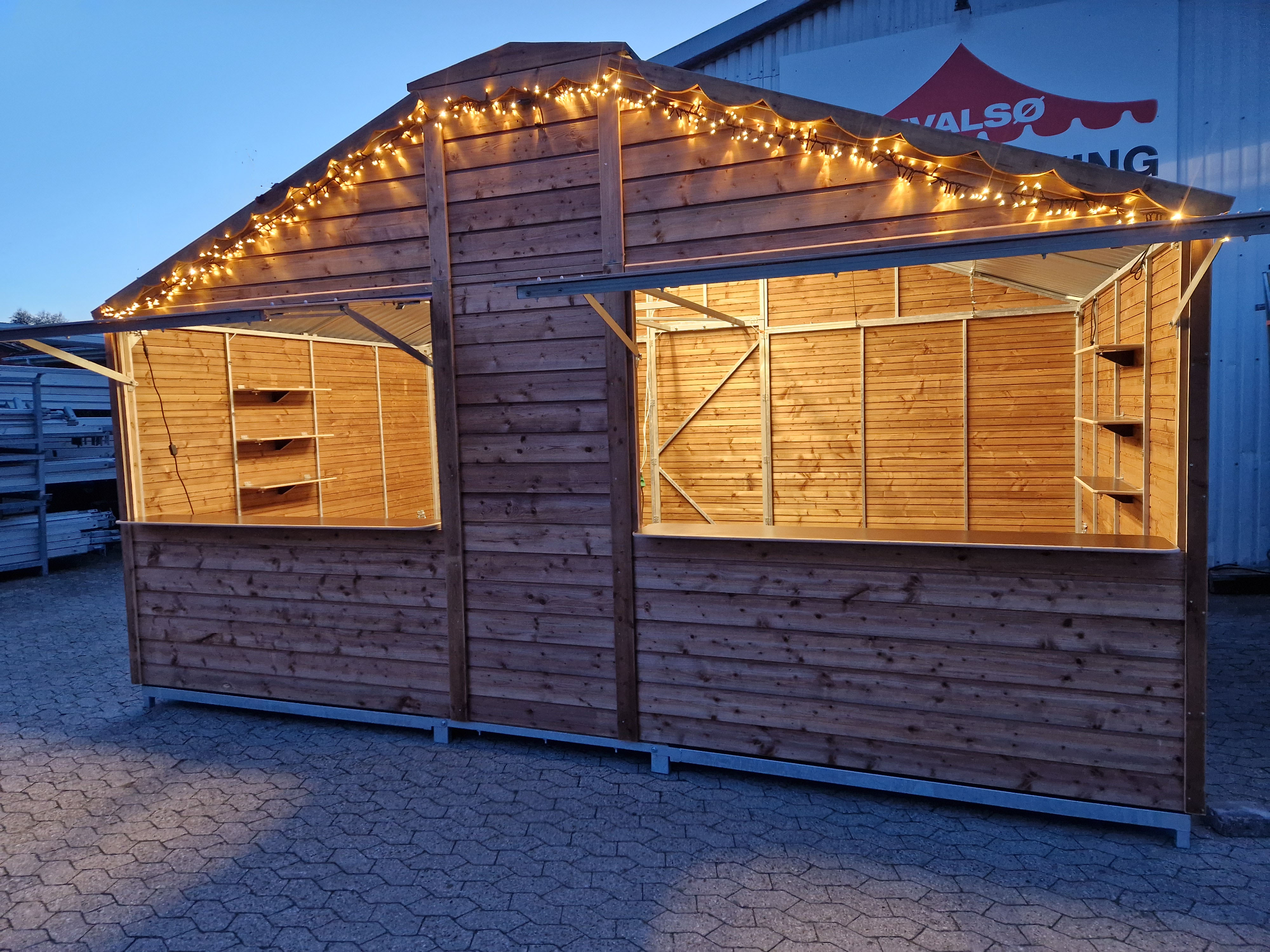 Vi har mange forskellige variationer og typer af julehuse. Ser du nederst på siden kan du få et overblik over de forskellige typer af boder. Bodernes smarte design gør det muligt at få lige den opsætning du ønsker hvad end det er med salgsbord eller åben front.